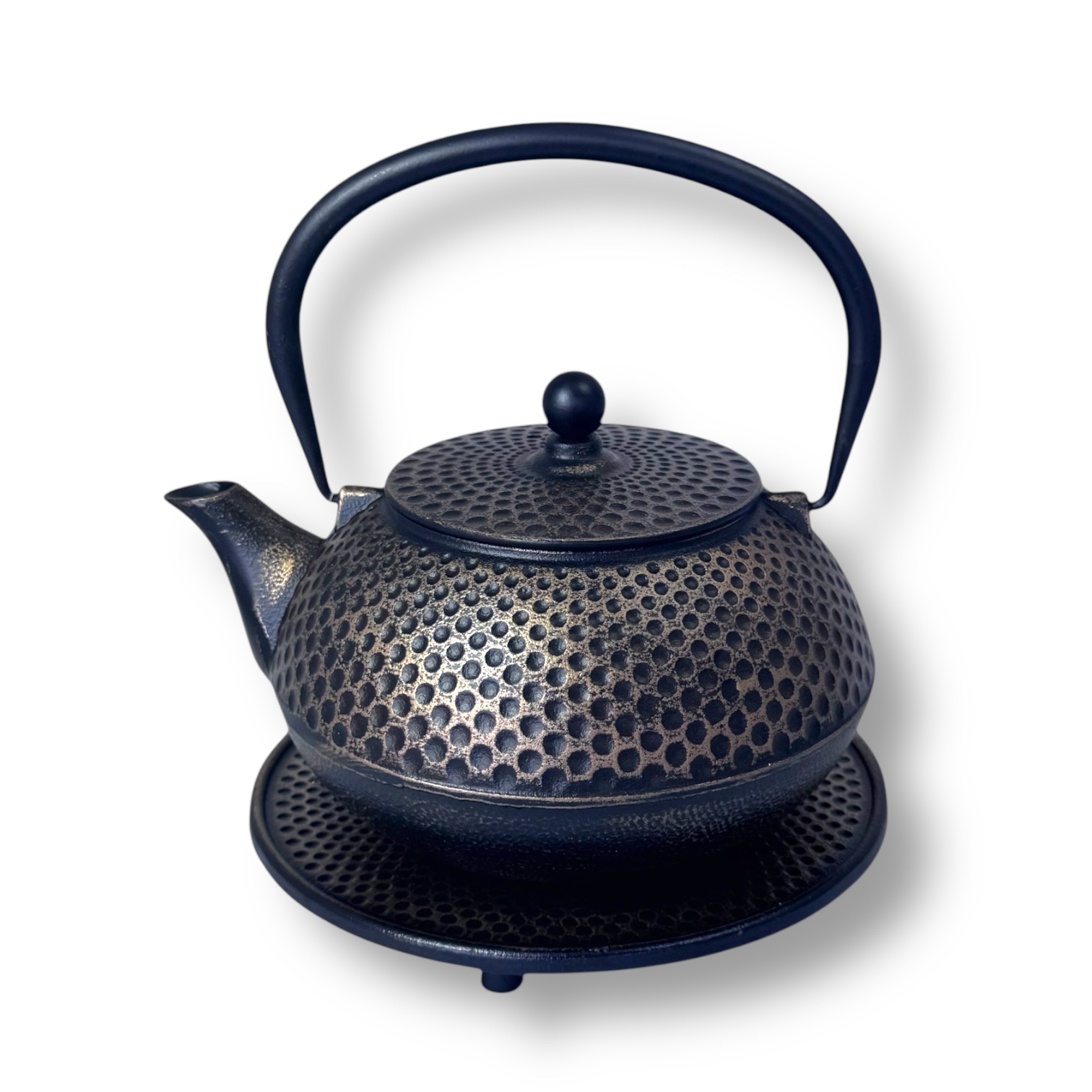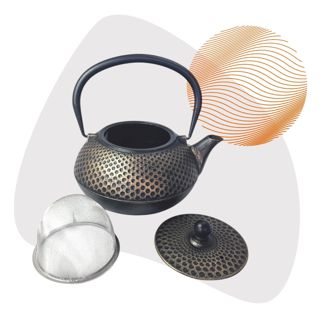 Die Teekanne aus Gusseisen ist innen durchgehend emailliert und wird mit einem farblich passenden Untersatz aus Gusseisen, sowie einem Edelstahl-Sieb geliefert. Der Untersatz dient zum Schutz einer jeden Tischplatte. Gusseisen zeichnet sich durch seine Fähigkeit aus, Hitze und Kälte länger zu speichern – ein Vorteil warmen Tee länger zu genießen, aber auch um Getränke zu kühlen. Die beigelegte Gebrauchsanleitung verrät wie man sich lange mit der richtigen Anwendung und der materialbedingten Langlebigkeit an diesem einzigartigen und formschönen Produkt.