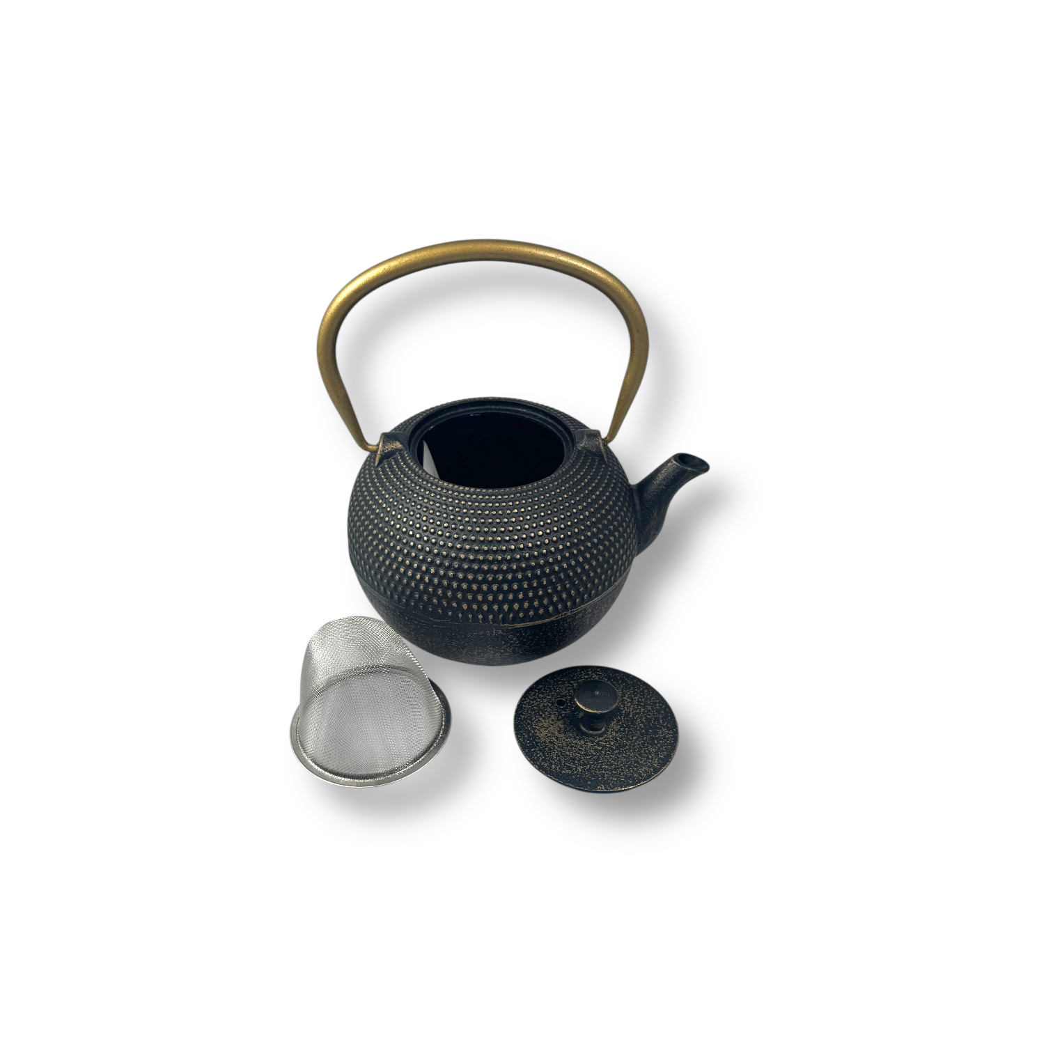 Die Teekanne aus Gusseisen ist innen durchgehend emailliert und wird mit einem Edelstahl-Sieb geliefert. Der Untersatz dient zum Schutz einer jeden Tischplatte. Gusseisen zeichnet sich durch seine Fähigkeit aus, Hitze und Kälte länger zu speichern – ein Vorteil warmen Tee länger zu genießen, aber auch um Getränke zu kühlen. Die beigelegte Gebrauchsanleitung verrät wie man sich lange mit der richtigen Anwendung und der materialbedingten Langlebigkeit an diesem einzigartigen und formschönen Produkt erfreuen wird.