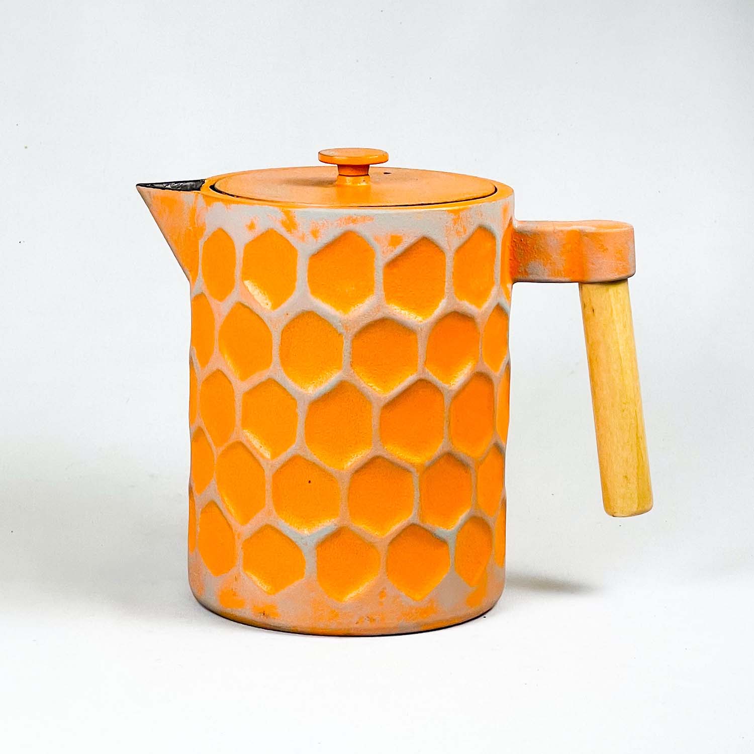 Die Kabo-Teekanne der Marke ja-unendlich ist ein handgefertigtes Unikat, gefertigt im traditionellen japanischen Sandgussverfahren. In bis zu 40 aufwendigen Arbeitsschritten entsteht ein farbenfrohes Einzelstück – kleine Abweichungen in Farbe und Größe unterstreichen die Einzigartigkeit.
