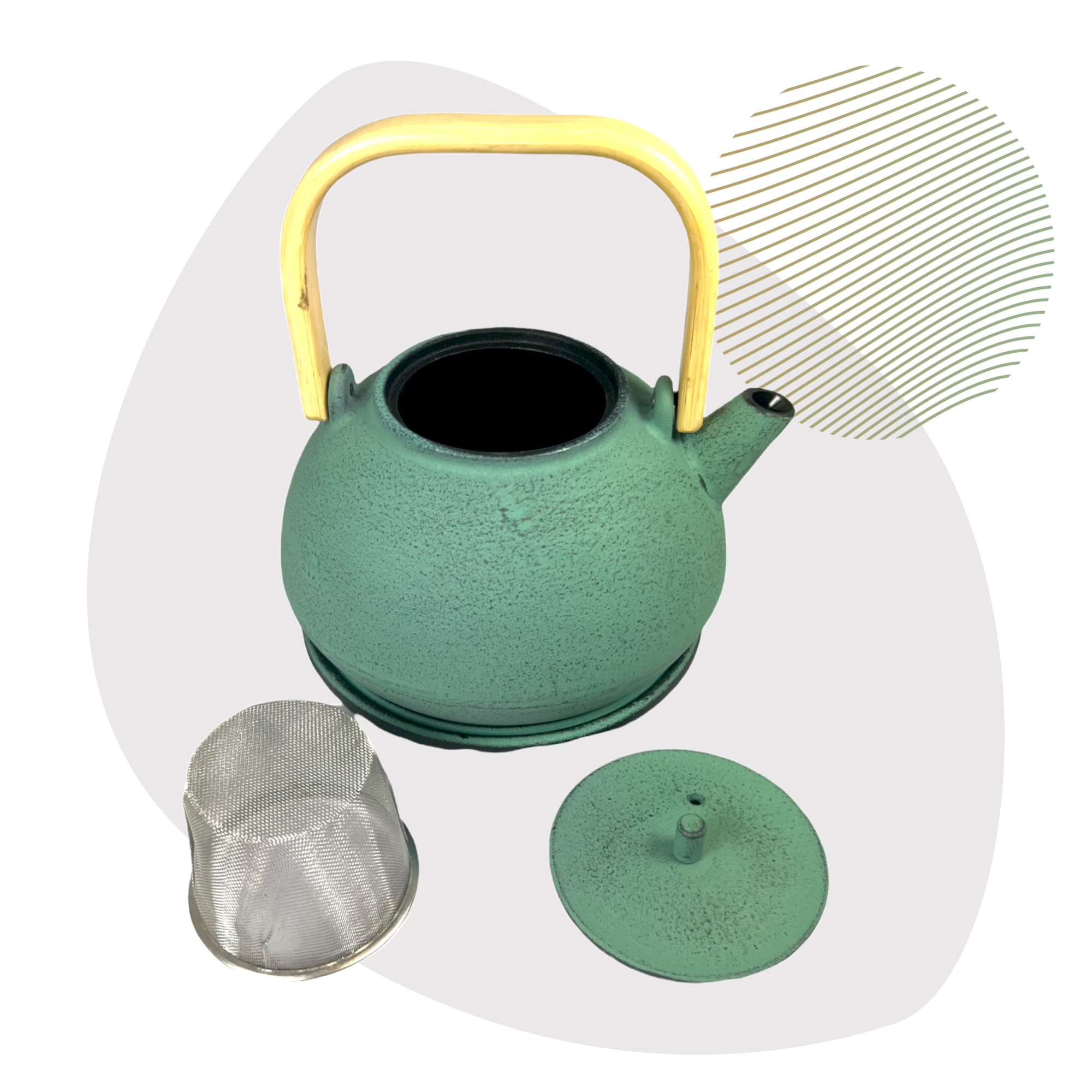 Die Teekanne aus Gusseisen ist innen durchgehend emailliert und wird mit einem farblich passenden Untersatz aus Gusseisen, sowie einem Edelstahl-Sieb geliefert. Der Untersatz dient zum Schutz einer jeden Tischplatte. Gusseisen zeichnet sich durch seine Fähigkeit aus, Hitze und Kälte länger zu speichern – ein Vorteil warmen Tee länger zu genießen, aber auch um Getränke zu kühlen. Die beigelegte Gebrauchsanleitung verrät wie man sich lange mit der richtigen Anwendung und der materialbedingten Langlebigkeit an diesem einzigartigen und formschönen Produkt erfreuen wird.