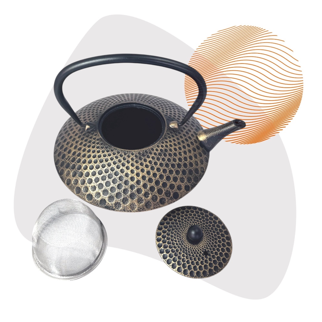 Die Teekanne aus Gusseisen ist innen durchgehend emailliert und wird mit einem Edelstahl-Sieb geliefert. Gusseisen zeichnet sich durch seine Fähigkeit aus, Hitze und Kälte länger zu speichern – ein Vorteil warmen Tee länger zu genießen, aber auch um Getränke zu kühlen. Die beigelegte Gebrauchsanleitung verrät wie man sich lange mit der richtigen Anwendung und der materialbedingten Langlebigkeit an diesem einzigartigen und formschönen Produkt erfreuen wird.